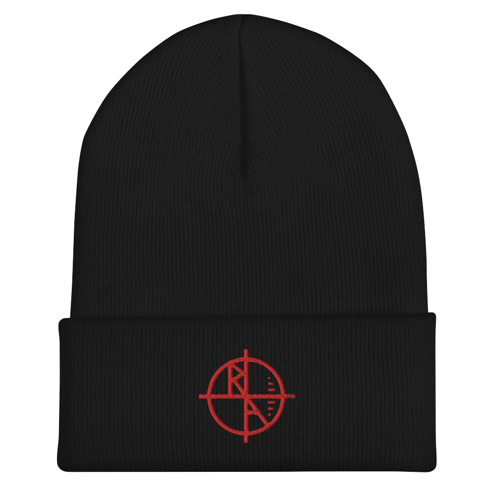 Black Cuffed Beanie Red Logo
