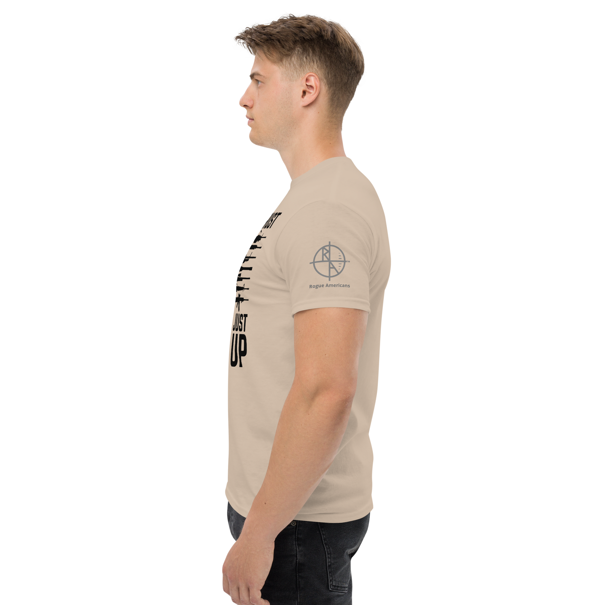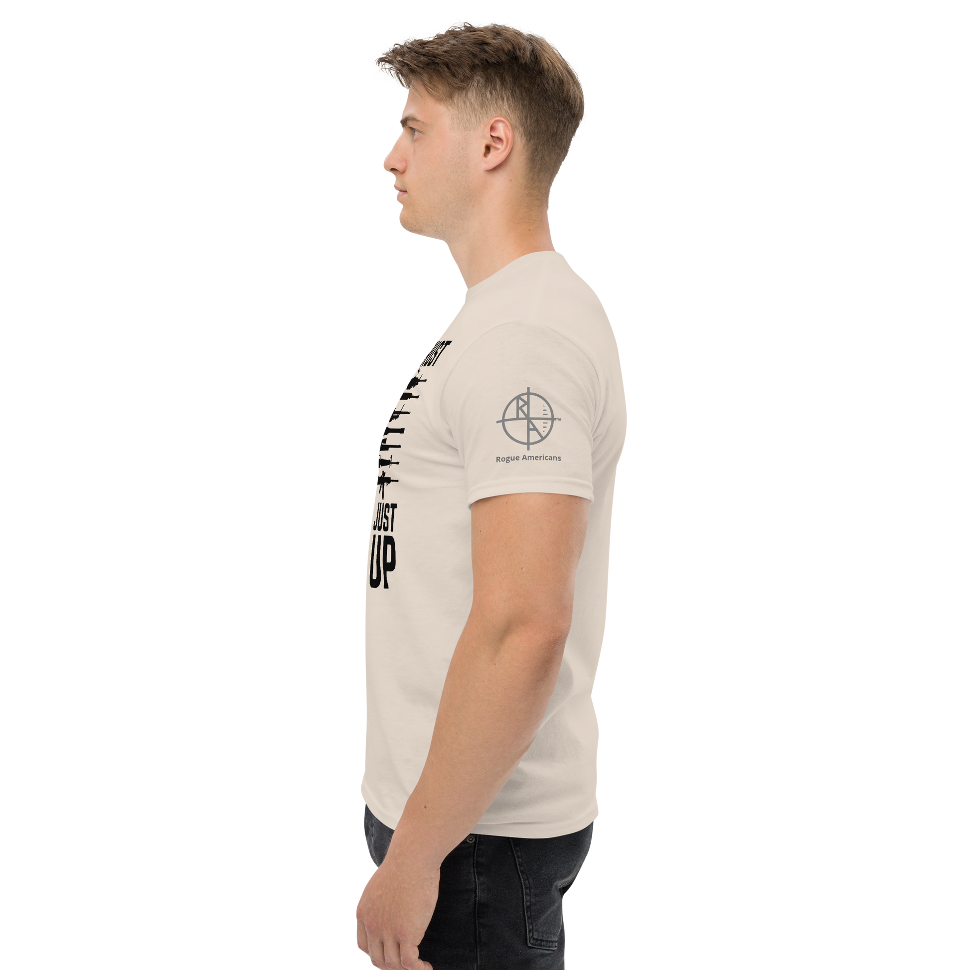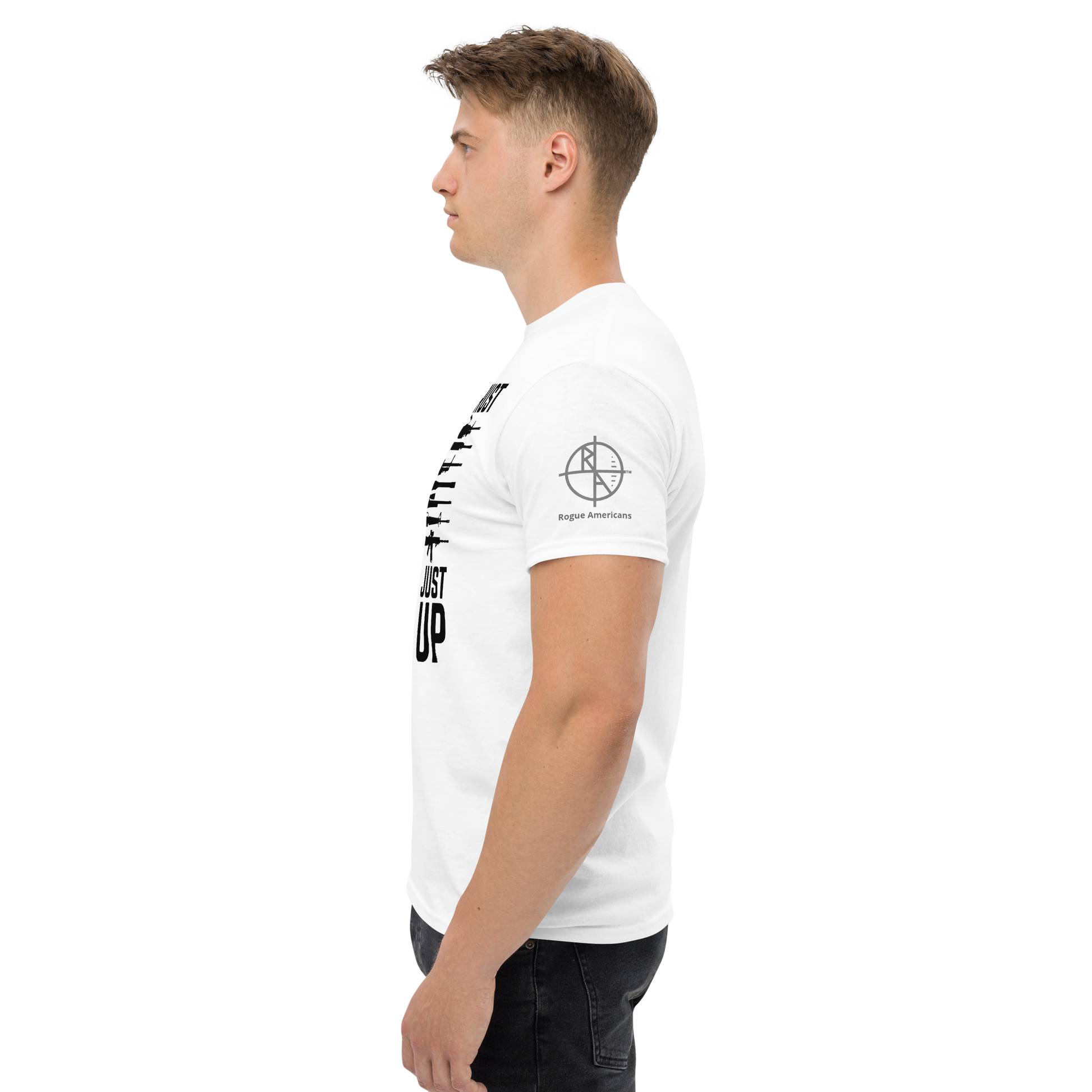 The 100% cotton men's classic tee will help you land a more structured look. It sits nicely, maintains sharp lines around the edges, and goes perfectly with layered streetwear outfits. Plus, it's extra trendy now!