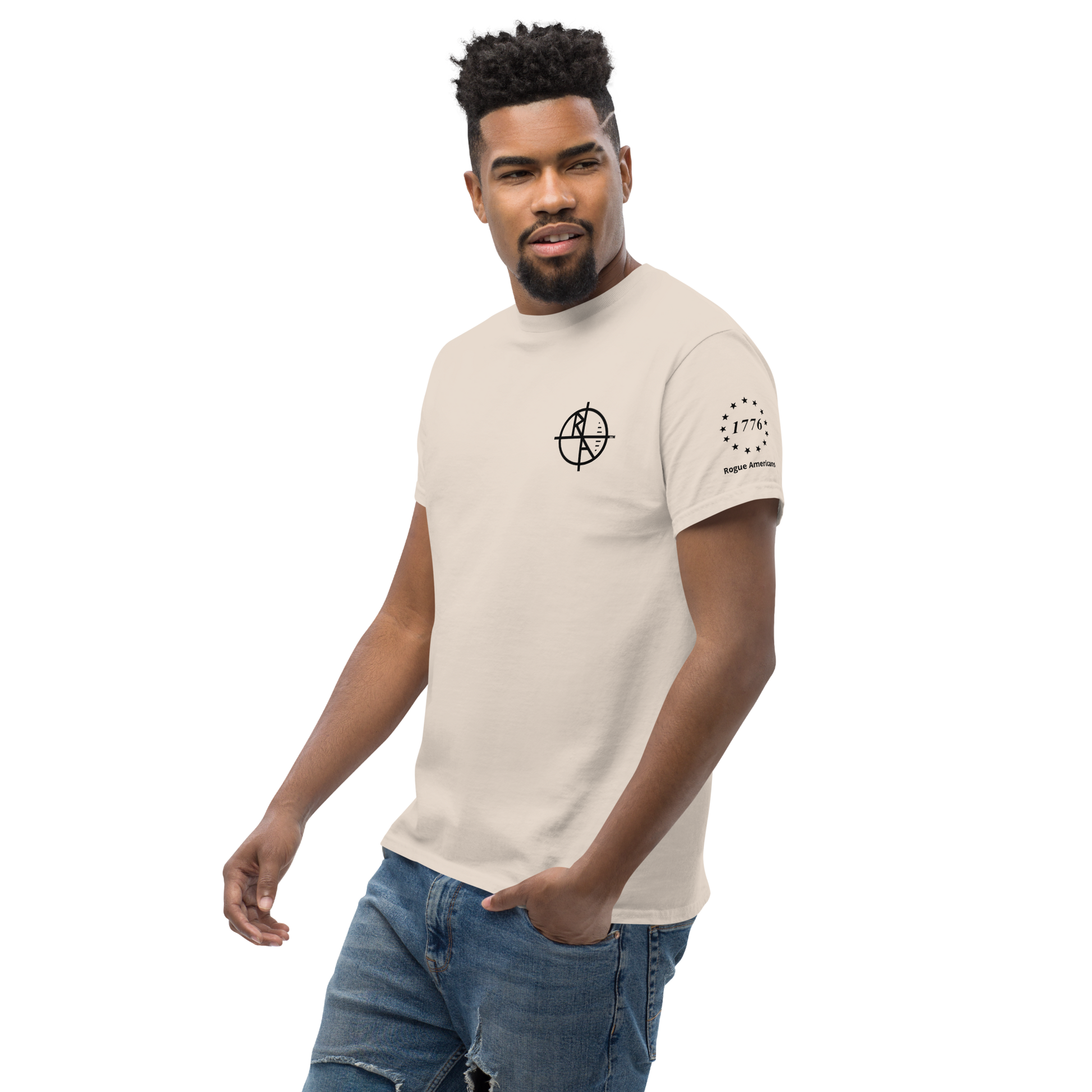 The 100% cotton men's classic tee will help you land a more structured look. It sits nicely, maintains sharp lines around the edges, and goes perfectly with layered streetwear outfits. Plus, it's extra trendy now!