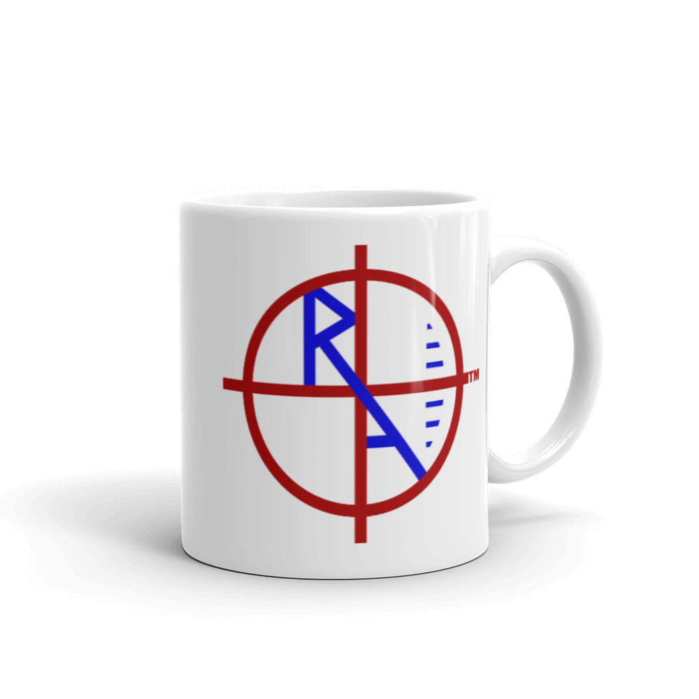 White Mug Red & Blue Logo